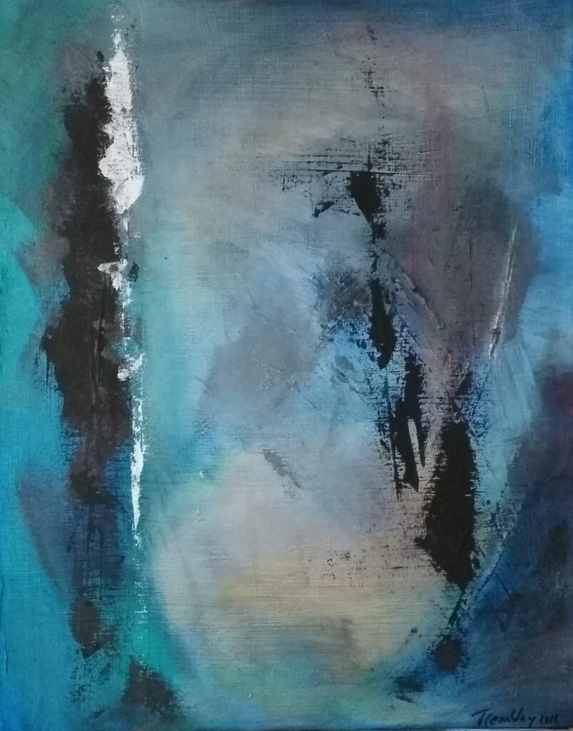 This is the painting, Tears in the Rain, interpreting Roy Batty’s soliloquy at the end of the film “Bladerunner“.